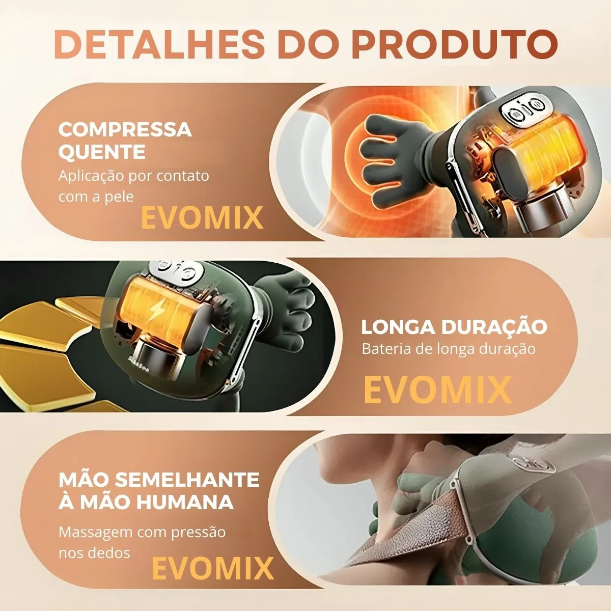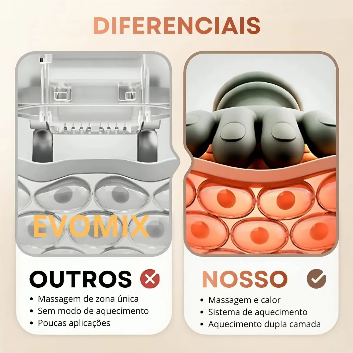 O Evomix combina a precisão da pressão biônica com a termoterapia profunda. Relaxamento imediato que derrete a tensão muscular em minutos.