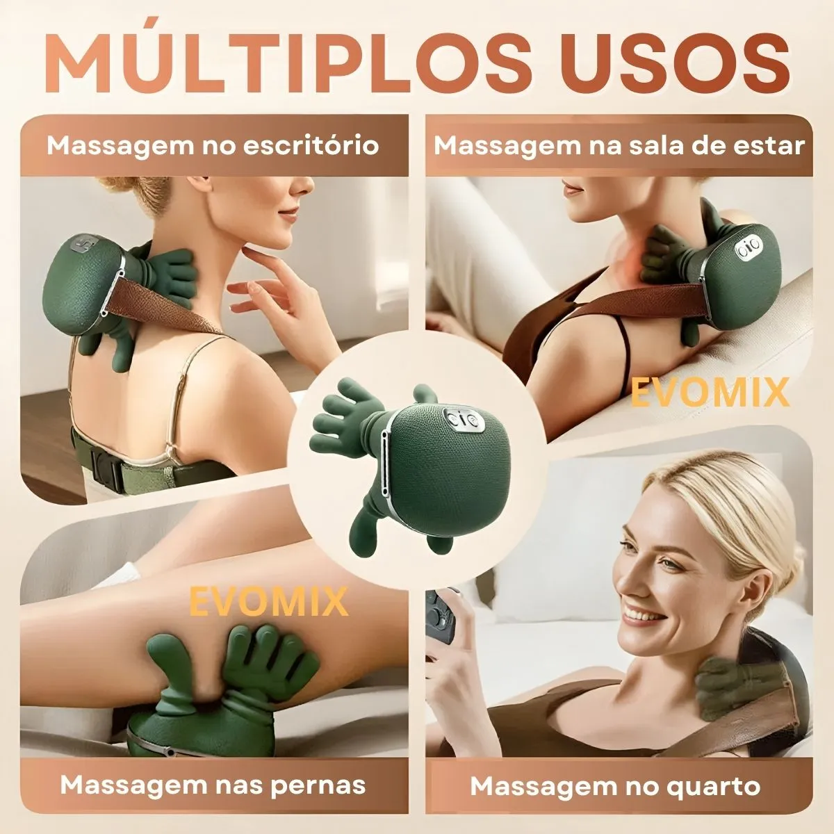 Simula o movimento exato de uma massagem profissional, atingindo os pontos certos com precisão.